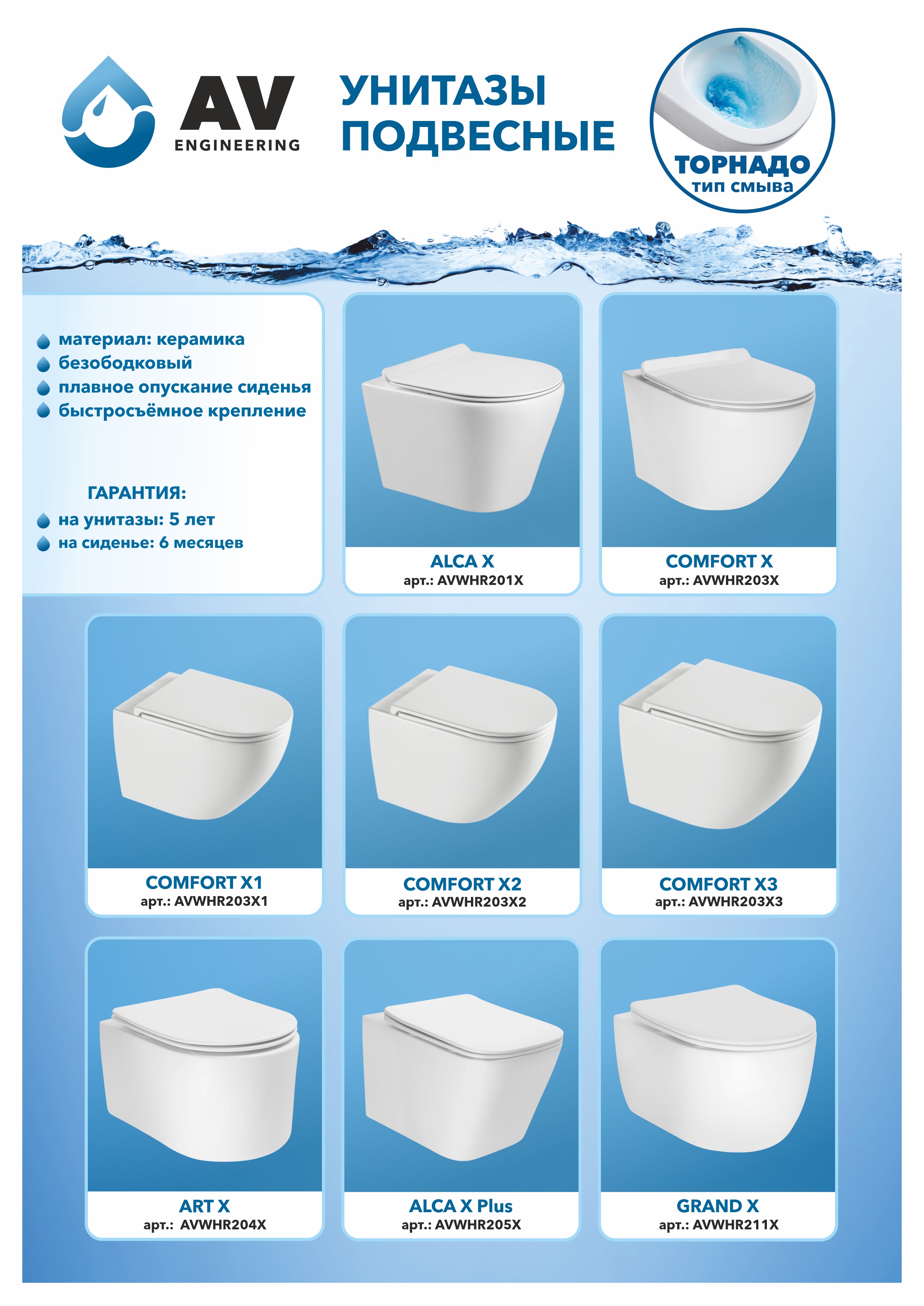 Унитаз подвесной AV Engineering, COMFORT X1 (Tornado смыв)
