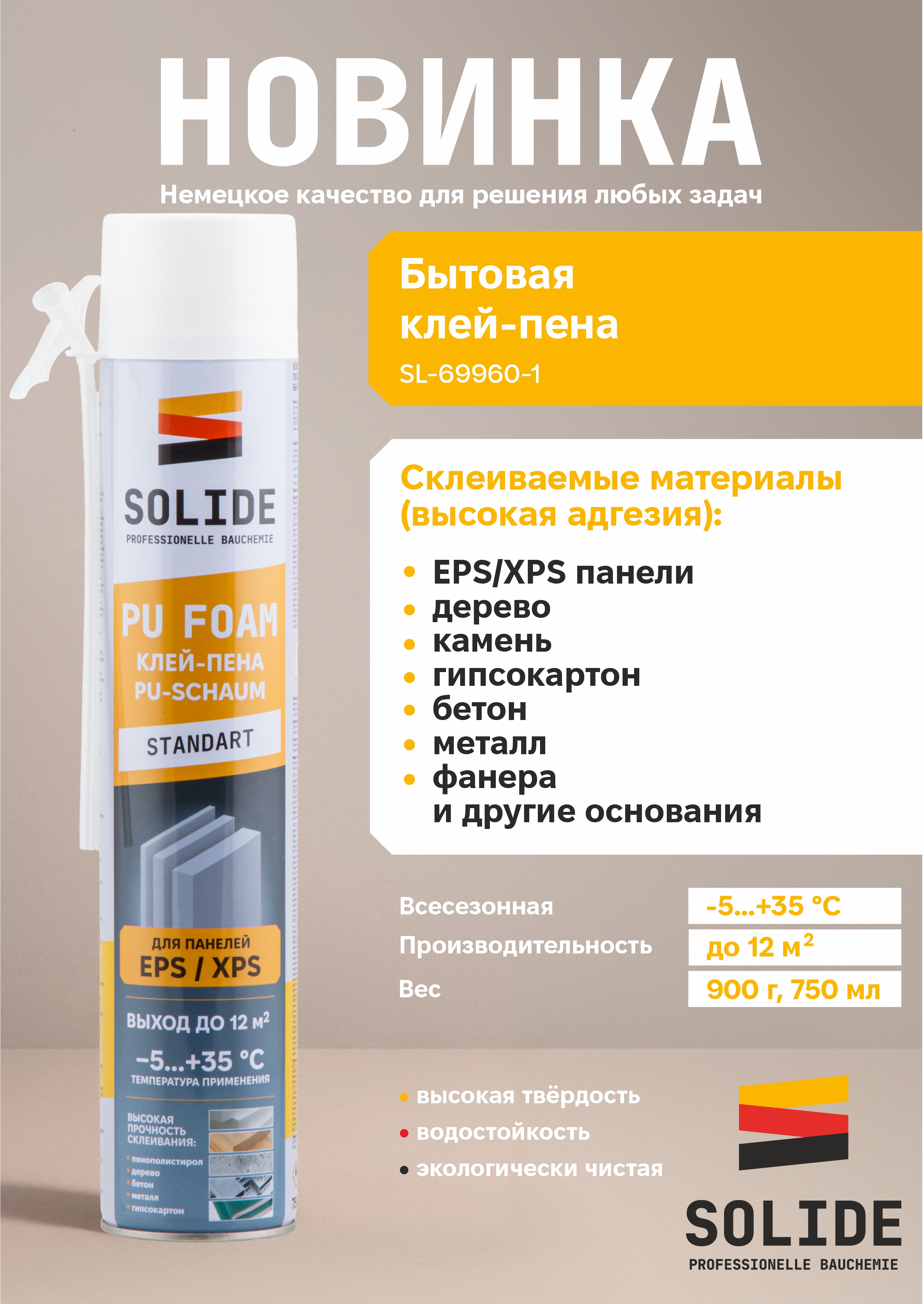 Клей-пена полиуретановая бытовая SOLIDE (750 мл)