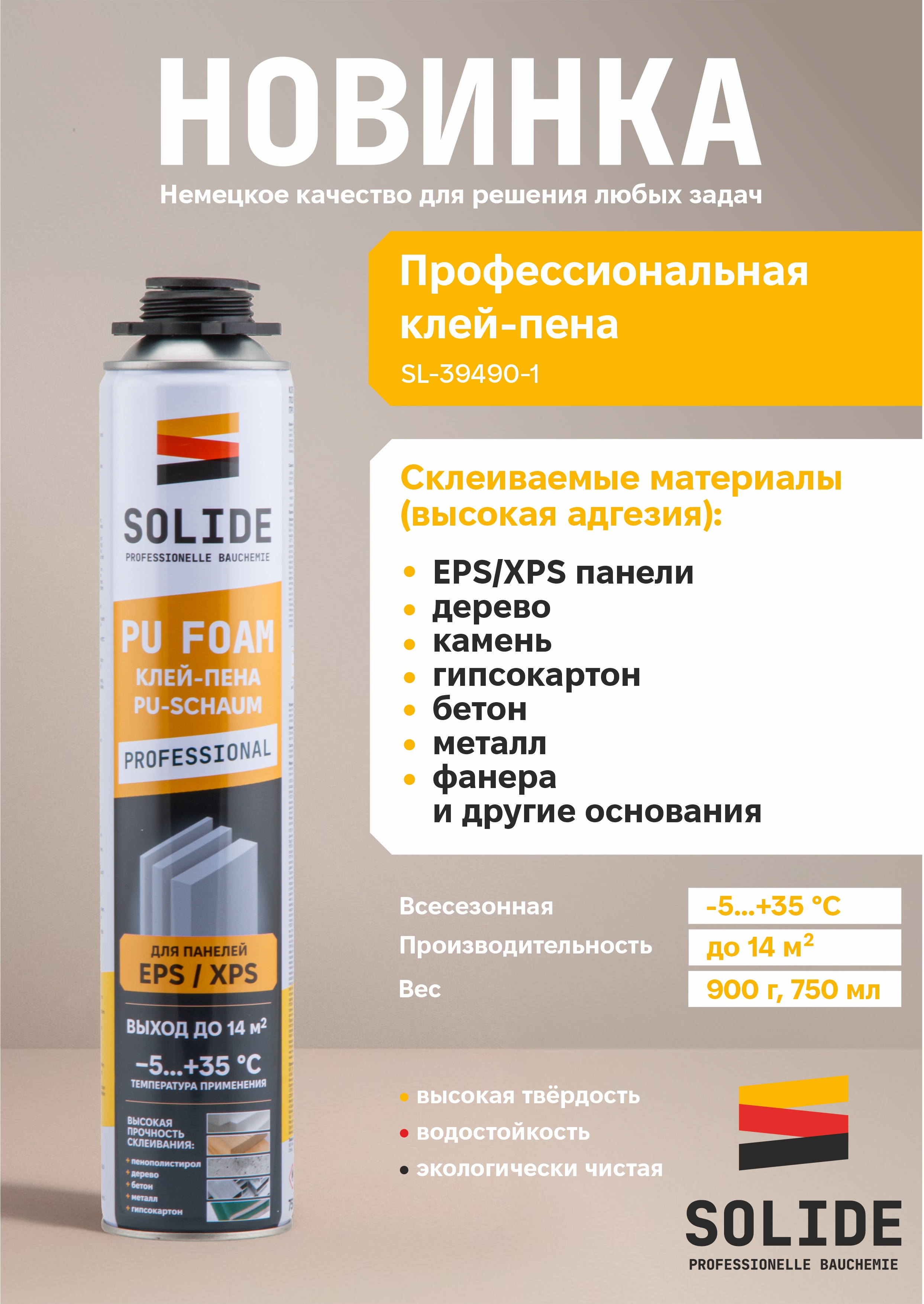 Клей-пена полиуретановая профессиональная SOLIDE (750 мл)