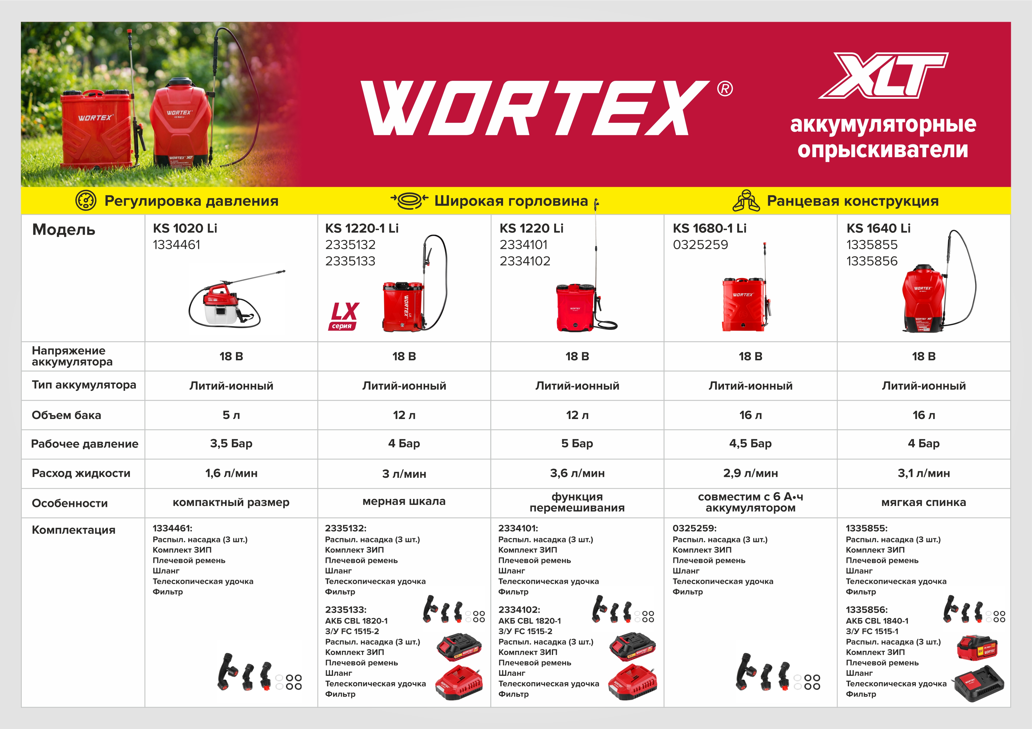 Аккум. опрыскиватель WORTEX LX KS 1220-1 Li в кор. ALL1 XLT SOLO 18В, 12 л (БЕЗ АКБ И ЗУ)